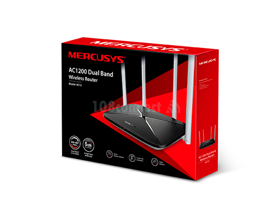 ROUTER (เราเตอร์) MERCUSYS AC12 AC1200 Dual Band Wireless Router 300 Mbps at 2.4 GHz, 867 Mbps 4* 10/100Mbps LAN ports,1* 10/100Mbps WAN port (สินค้ารับประกัน 1 ปี)