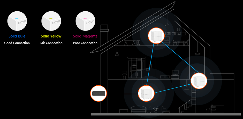 nova MW6 (3-Pack) AC1200 Whole Home Wi-Fi Mesh System 2 Gigabit Ethernet ports per mesh point WAN and LAN on primary mesh point both act as LAN ports on additional mesh points