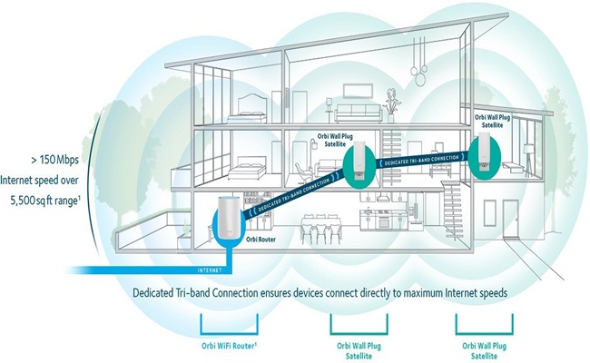 - Tri-Band technology - unlike other Wi-Fi sets that lose speed as you add devices, Orbi routers maintain