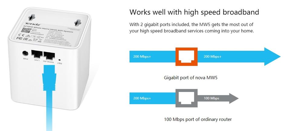 nova MW5(2-pack) AC1201 Whole-home Mesh WiFi System 2.4GHz: Up to 300Mbps,5GHz: Up to 867Mbps