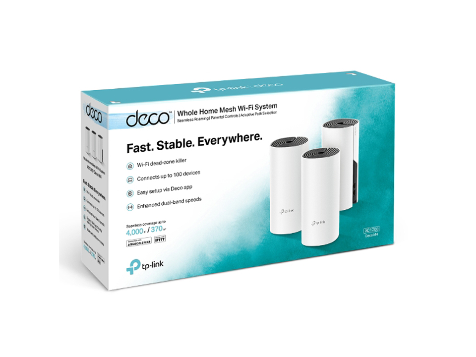 MESH WI-FI (เครือข่ายไวไฟ) TP-LINK Deco M4(3-Pack) AC1200 Whole-Home Mesh Wi-Fi System