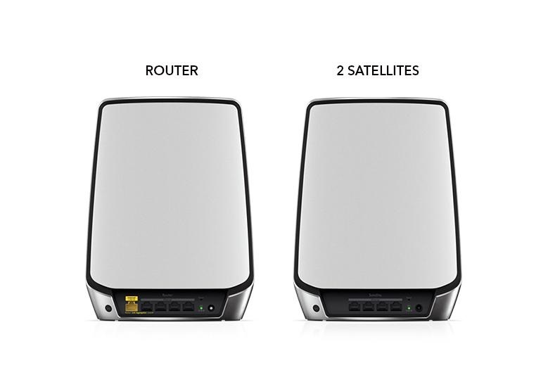 - AX6000 Tri-Band WiFi : 2.4GHz (1200Mbps) + 5GHz (2400Mbps) สำหรับอุปกรณ์ WiFi เพื่อเชื่อมต่ออินเทอร์เน็ต ลิงก์ WiFi เฉพาะ 5GHz (2400Mbps) เพื่อการเชื่อมต่อข้อมูลที่รวดเร็วยิ่งขึ้นระหว่าง Orbi Router และ Orbi Satellite