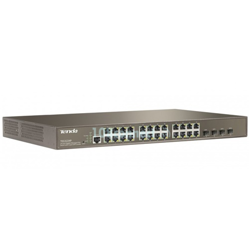 TENDA TEG3224P 24 gigabit RJ45 ports including 4 combo RJ45/SFP ports, 1U 19-inch rack-mountable